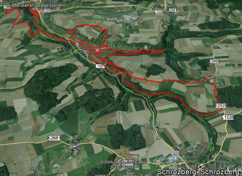 Die Strecke führte die beiden Judoka von Niederstetten nach Oberstetten den Berg hinauf nach Krailshausen und über das Vorbachtal wieder zurück nach Oberstetten. Von dort ging es bergauf zum Flugplatz von Niederstetten und wieder hinab nach Oberstetten. Über das Reutal wieder bergauf und zurück nach Oberstetten. Auf dem Rückweg mussten die Beiden noch den Galgenberg zwischen Oberstetten und Niederstetten bezwingen, bevor Sie nach 02:51h gemeinsam im Stadion einliefen.